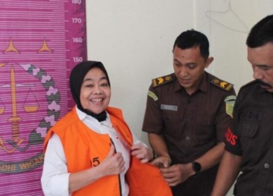 Miris,Senyum Sumringah,Bu Kades yang Diduga Jual Aset Posyandu Saat Akan Diboyong ke Sukamiskin